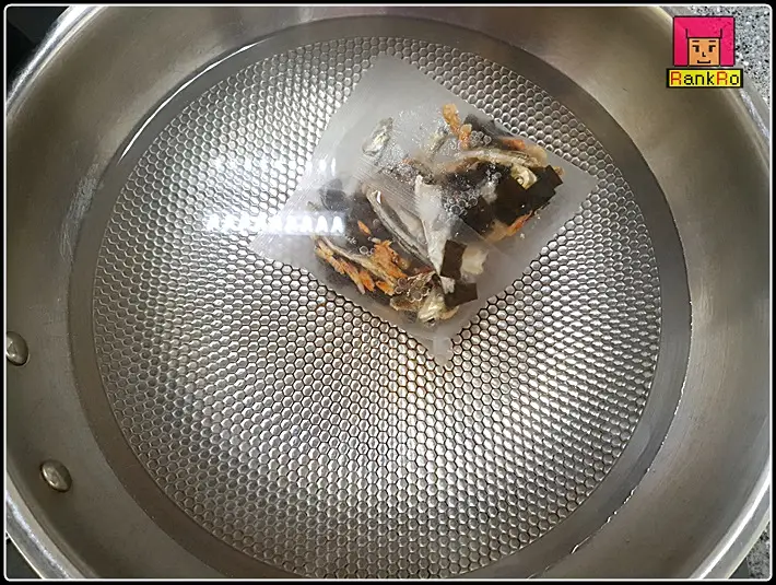 ▼ 맑고 깔끔한 멸치 다시마 육수를 만들어 주세요. 물 1500ml에 멸치 다시마팩을 넣고 끓어오르면 10분 정도 후 건더기는 건져내주세요.