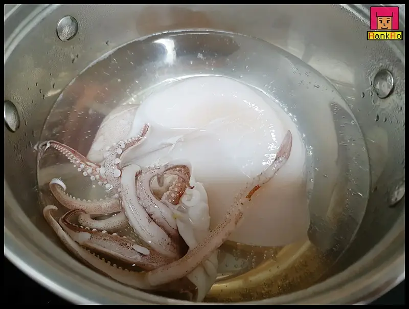 ▼ 끓는 물에 해동된 오징어를 데쳐 주세요. 데친 오징어는 찬물에 헹궈 준비합니다.