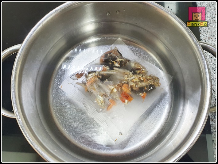 ▼ 맑은 순두부국에 들어가는 물 1.5리터에 다시멸치육수팩을 이용해 육수를 내주었어요. 대략 10분정도 끓여주면 진한 육수가 완성이 됩니다.