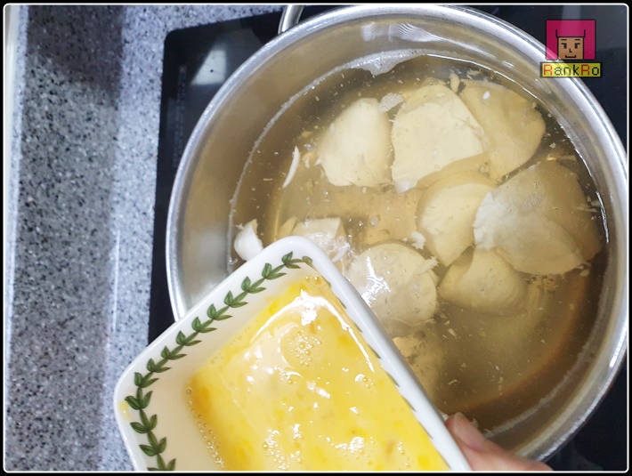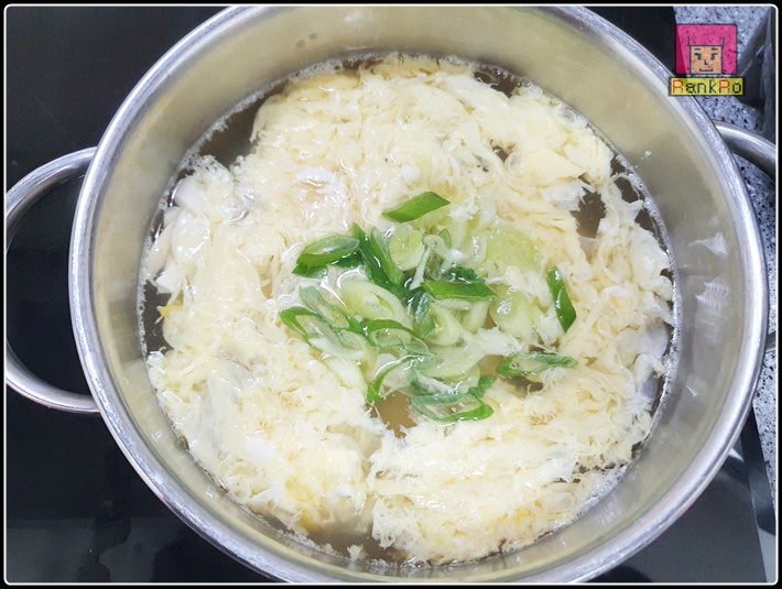 ▼ 국간장과 마늘을 넣고 한번 끓은후 풀어 놓은 계란을 후루룩 넣어주세요. 숟가락으로 젓지 않고 익을때까지 기다려 주세요. 덜 익었을때 저으면 국물이 탁해질 수 있답니다.