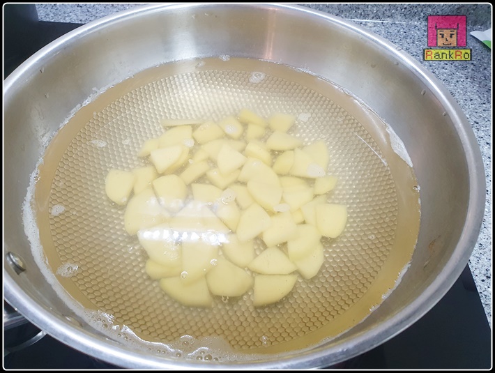 ▼ 멸치와 다시마를 이용해 육수를 만들었어요. 만들어진 육수에 썰어놓은 감자를 넣고 끓여주세요.