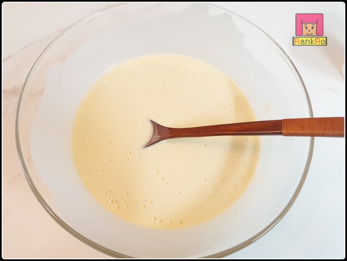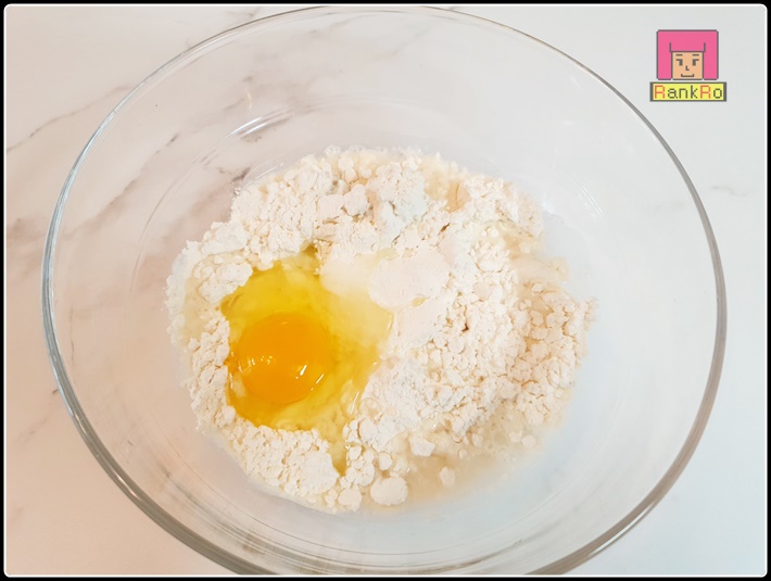 ▼ 계란 1개와 물2컵을 넣어 주세요. (바삭하게 만들기 위해 차가운물을 사용했어요.)