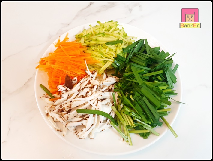 ▼ 부추 부침개에 들어갈 야채들을 채 썰어 준비합니다. 부추는 먹기좋게 잘라 주세요.