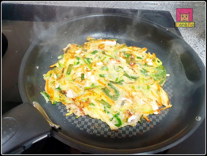 ▼ 팬에 식용류를 둘러주세요. 이제 구울 준비....맛있는 부추전...