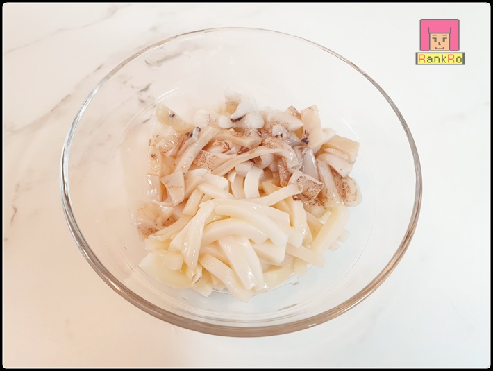 ▼ 부추전에 들어가는 오징어를 씻고 썰어 준비 해주세요.