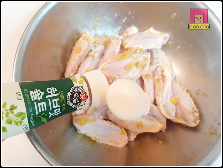아랫날개(윙)2팩, 올리브오일1스푼, 다진마늘2스푼, 허브솔트