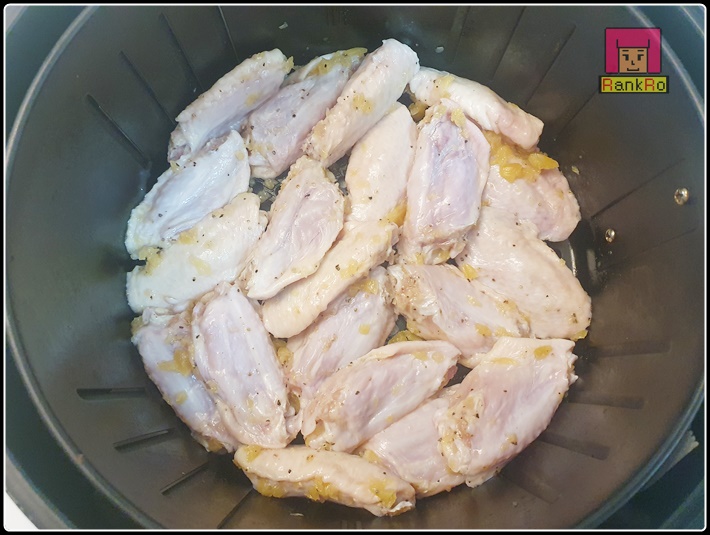 ▼ 이제 에어프라이어에 가지런히 닭날개를 넣어주시고 구워주세요. 저는 180도에서 10분정도로 구웠어요. 더 노릇노릇한 요리로 만들고 싶다면 시간을 조금씩 더해주시면 됩니다.