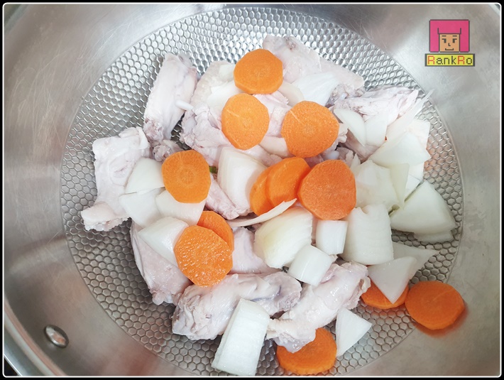 주재료 >> 닭봉1팩, 닭윗날개1팩, 양파1/2개, 당근2/3개, 대파,올리브오일, 물