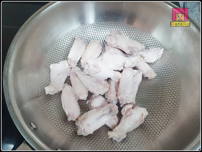 ▼ 닭을 넣은 후 팔팔 끓여서 데쳐주세요. 닭을 넣고 겉면이 익으면서 불순물이 많이 올라올때 불을 꺼 주시면 됩니다. 지금까지 잘 따라와 주셨다면 기름기도 어느정도 제거되는 동시에 잡내도 사라졌을 거예요.
