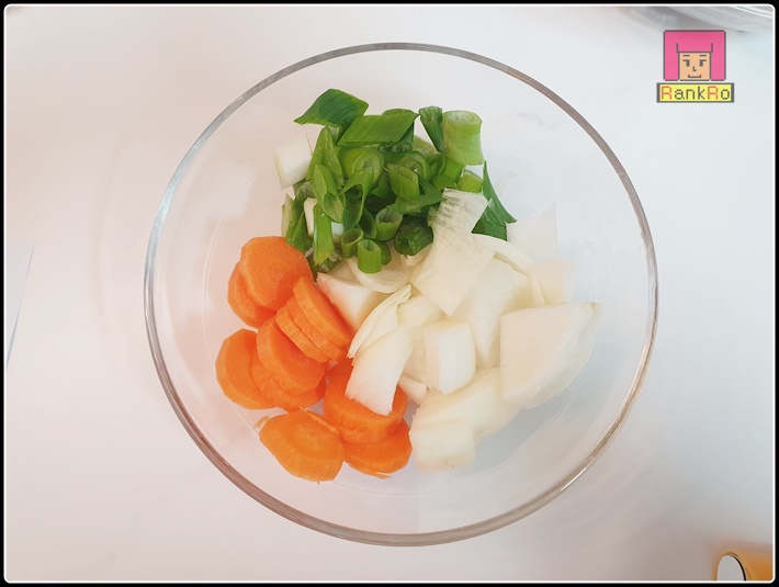 ▼ 간장닭찜, 닭봉간장 조림에 들어가게 될 야채를 준비합니다. 양파, 당근, 대파를 먹기 좋게 잘라서 준비 합니다. (감자나 고구마, 당면을 넣어주셔도 좋아요.) 냉장고 사정에 따라 재료가 없으신 분들은 저처럼 양파, 당근, 대파만 넣어주셔도 됩니다.
