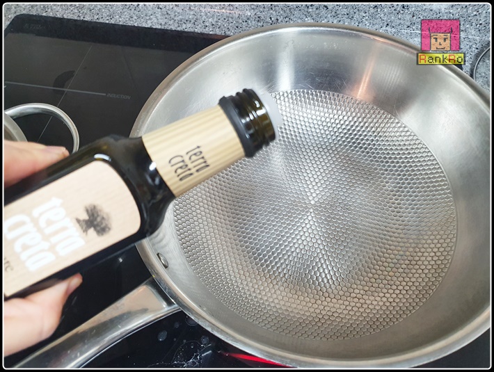 ▼ 깊은 웍이나 궁중팬에 올리브유 1큰술을 넣어줍니다. (식용류로 대체하셔도 됩니다.) 올리브유를 두르고 닭고기를 살짝 볶아주면 육즙도 보존되고 맛과 풍미가 올라갑니다.