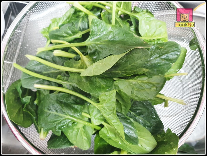 ▼ 시금치를 손질합니다. 지저분한 잎은 떼어내고 끝부분은 흙이 많이 묻어있기 때문에 잘 제거해 주시면 됩니다. 깨끗한 물로 여러번 씻어 준비해 주세요.