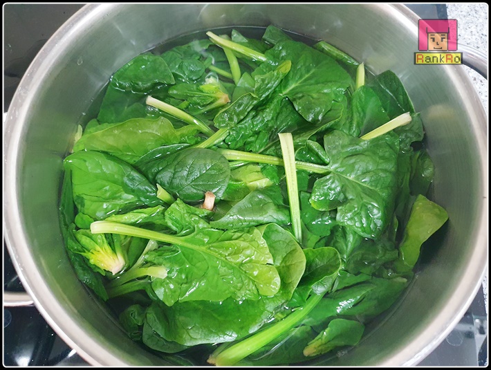 ▼ 그 다음 시금치를 넣고 데쳐주시면 됩니다. 물의 양과 재료의 양에 따라 다르지만 저는 30초~1분내외로 데쳐 주었어요. 너무 오래 데치면 흐물흐물 물렁한 식감이 될 수 있으니 아삭한 식감을 느끼시려면 최대 2분이 넘지 않도록 데쳐주세요.