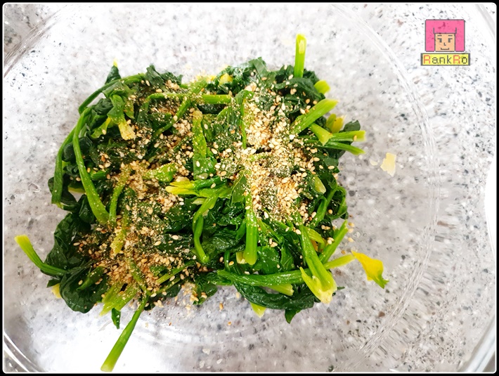 ▼ 마지막으로 시금치 나물에 고소한 깨소금을 넣어주세요. (깨소금향이 솔솔~~시금치무침)