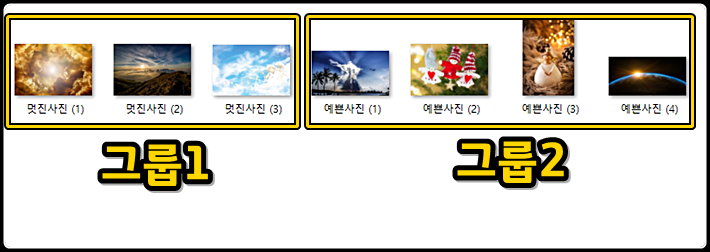 ◆ 이번에는 동일 폴더 안에 있는 이미지 그룹을 나누어야 할 필요할 필요가 있을 경우로 생각해보겠습니다.