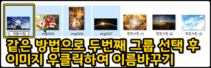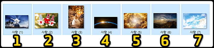 ◆ 만약 중간 이미지부터 순번을 부여하고 싶다면 해당 이미지 위에서 이름을 변경하는 방법을 사용하면 됩니다. 예를 들어 아래와 같이 왼쪽에서 네 번째 이미지부터 오른쪽으로 순번을 부여하고 싶다면 다음과 같은 방법을 이용해보세요.