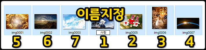 ◆ 이번에 알려드리는 방법은 이미지의 성격에 맞는 순번을 부여하는 것일 뿐, 이미지의 이름 자체를 여러 가지로 변형하는 것은 아닙니다.