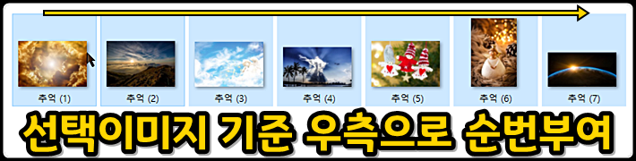 ▼ 그럼 아래와 같이 이미지 제목이 순번에 맞도록 변경이 된 것을 알 수 있습니다. 선택된 이미지 기준 우측으로 순차적으로 순번이 부여되는 것을 알 수 있습니다.