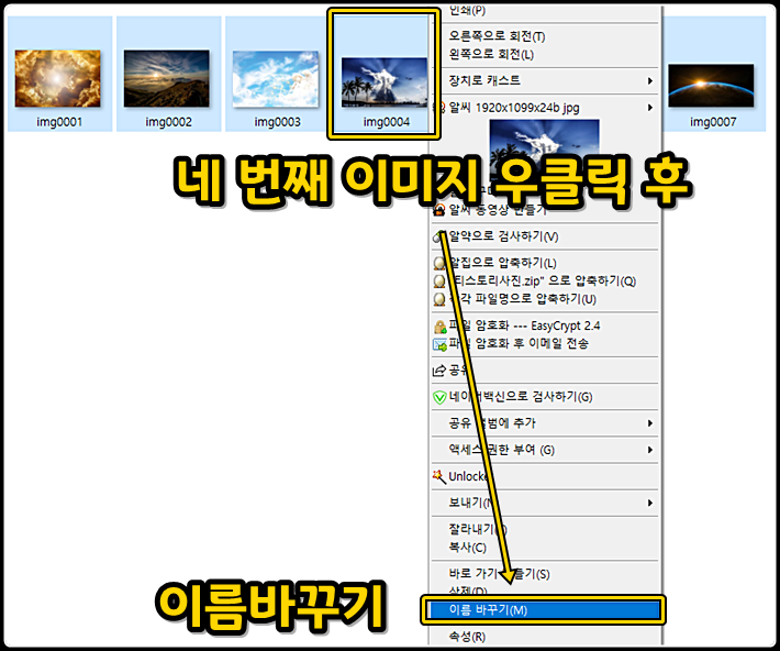 ▼ 네 번째 이미지를 우클릭한 후 '이름 바꾸기(M)'를 선택합니다.