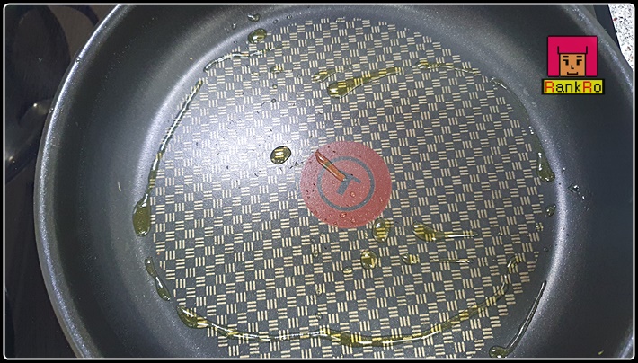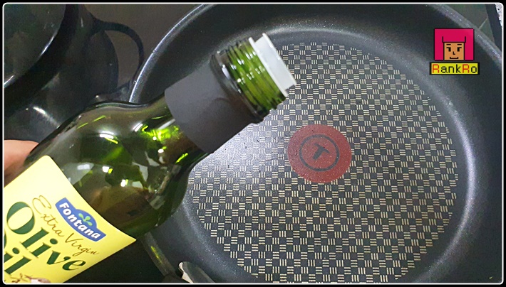 ▼ 예열한 프라이팬에 올리브오일을 둘러 줍니다. 버터나 식용유를 사용하셔도 됩니다. 팬이 달아오르면 중약불로 줄여주세요.