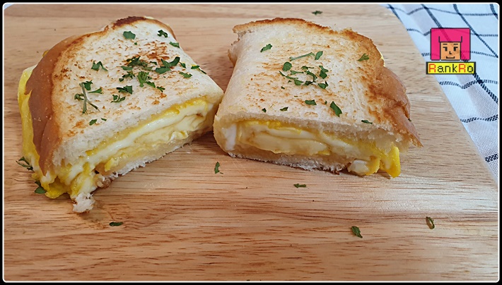 ▼ 아이들과 함께 먹으려고 반으로도 잘라 보았습니다. 치즈가 살짝 녹아서 아주 맛있어 보이는 식빵 계란 토스트.