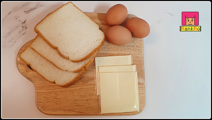 ▼ 식빵 계란 토스에 들어가는 재료를 준비합니다. 저는 아이들과 같이 먹을 식빵 3장과 계란3개, 체다치즈3개를 준비했습니다.
