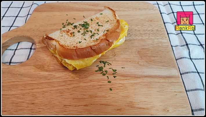 ▼ 파슬리가루도 솔솔 뿌려주니 맛있는 식빵계란토스트 완성입니다. 식빵 안쪽이 따뜻해서 맛있게 먹었답니다.