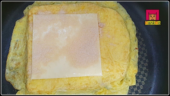 ▼ 바닥면 계란이 익었다면 그대로 뒤집어주세요. 이때 찢어지지 않게 조심 하시면 됩니다. 치즈를 올려주시고 치즈위에 설탕을 반스푼 살포시 얹어 주세요. 치즈가 녹으면서 설탕과 접착력이 더 좋아진답니다. 설탕량은 조절해서 넣어 주시고, 설탕대신 딸기잼을 올려 주셔도 맛있답니다.