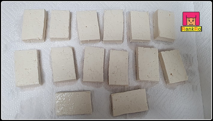 ▼ 잘라논 두부는 물기를 키친타올을 이용해 제거해 줍니다. 썰어논 두부를 나열해 올려 주신 후 키친타올로 덮어 한 번 더 물기를 제거해 주시면 됩니다. 소금으로 밑간을 해 주셔도 좋지만 저는 밑간 없이 만들었습니다. ( 물기가 있으면 기름이 튈 수도 있고 양념장 맛이 나지 않고 흐려 질 수 있습니다. )