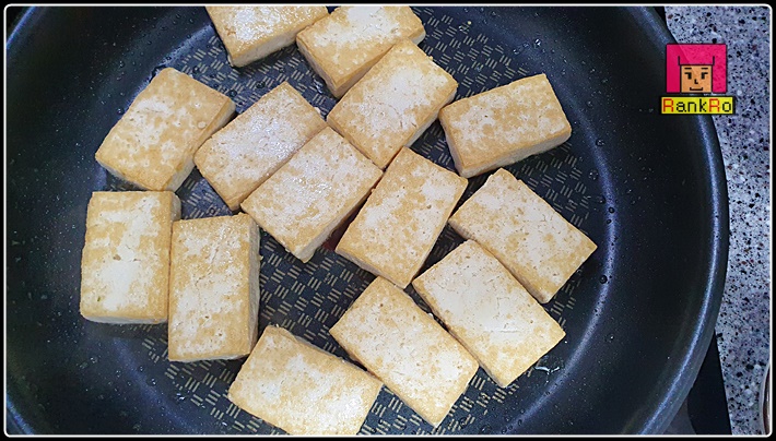 ▼ 두부를 올려 구워 줍니다. 중 약불로 6~7분정도 부쳐 주시고 뒤집어서 4~5분간 구어 주시면 됩니다.