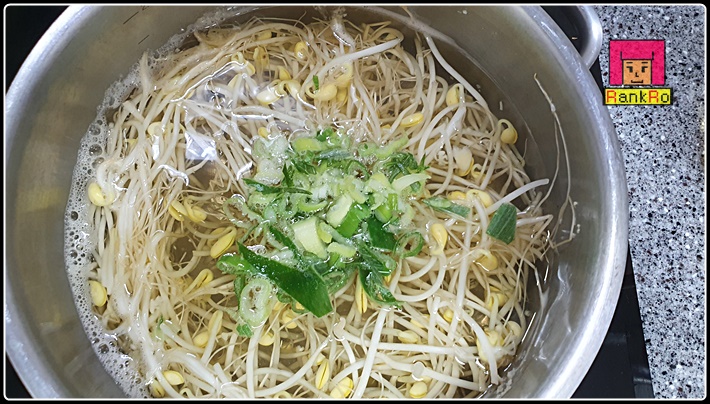 ▼ 맑은 콩나물국에 준비해 둔 파를 넣어 줍니다. 신선한 파를 넣으면 은은한 향이 입맛을 돋우어 주는 역활을 합니다.