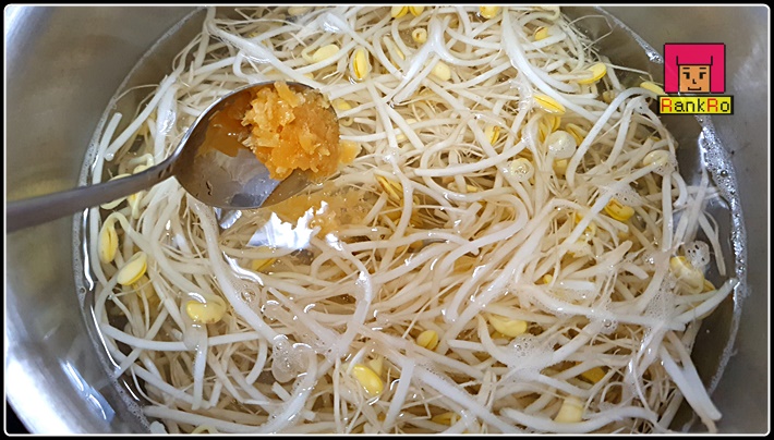 ▼ 맑은 콩나물국에 다진마늘도 1/2큰술 넣고 끓여 줍니다.
