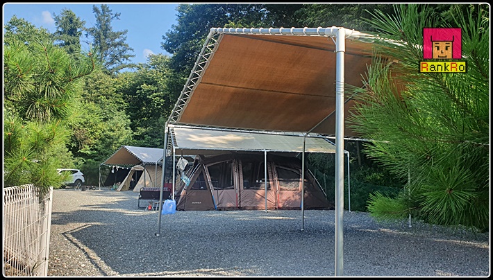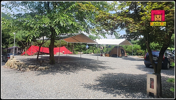 ▼ 치악산 한다리골 캠핑장는 원주시 소초면에 위치해 있으며 치악산 밑 계곡과 산 안쪽 깊숙이 있어 공기좋고 조용한 캠핑장입니다. 사이트 가,나,다, A~E사이트는 타프동으로 만들어 져 있으며, 맨 끝쪽 F사이트는 타프가 없는 파쇄석으로 되어 있습니다. 한다리골캠핑장 타프존은 여름철 기습폭우나 장마, 9월에 있을 가는 장마에도 큰 신경 쓰지 않고 캠핑이 가능한 캠핑장입니다. 개인적으로 이렇게 타프가 설치되어 있는 캠핑장을 참 좋아한답니다. 타프가 처져 있어서 더위를 피하는데도 최고란 생각이 들며, 나무에서 떨어지는 벌레들도 효과적으로 차단되기 때문데 텐트도 깔끔하게 사용 할 수 있다는 여러 장점이 있는 것 같네요. 한다리골 캠핑장 사이트도 넓은 편이고 캠핑장 바닥은 전체적으로 파쇄석으로 되어 있는 캠핑장입니다. 커다란 나무가 많아 자연그늘 아래 시원한 여름 캠핑을 즐기기에 부족함이 없어 보였습니다.
