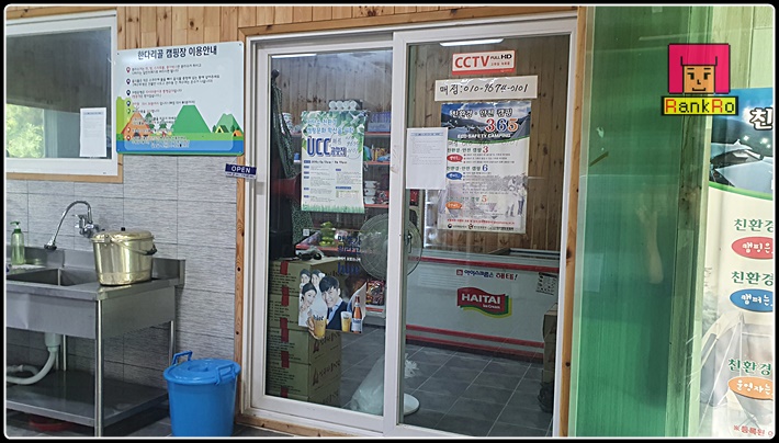 ▼ 수영장 뒷편에 매점과 관리실이 있습니다. 관리실에서 예약확인을 하고 기본적인 캠핑용품을 판매하고 있으며 음료와 간식거리도 있어서 챙기지 못하거나 빠진 준비물을 채울 수 있을 것 같습니다.