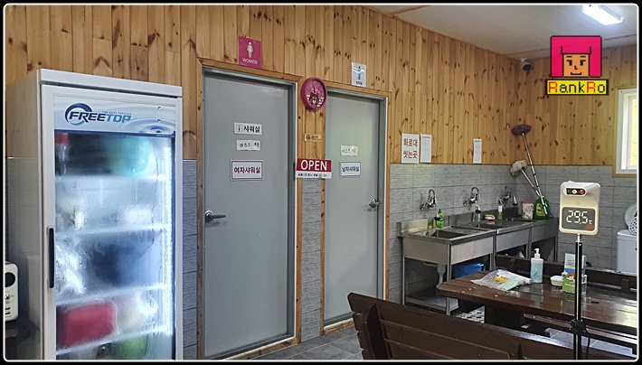 ▼ 캠지기님이 거의 상주하시며 샤워장이며 화장실, 수영장까지 계속 관리하시는 듯 했습니다. 샤워실도 깔끔하게 정리되어 있으며, 샤워실 입구에는 옷을 수납할 수 있는 수납장도 있습니다.
