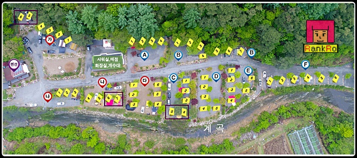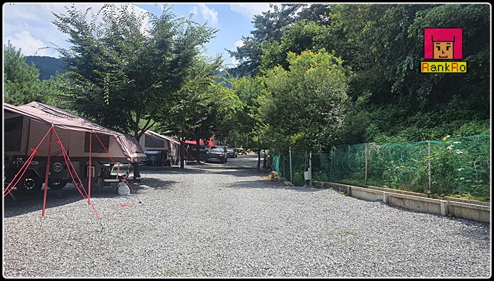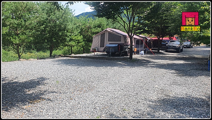 ▼ 치악산한다리골캠핑장 C, D구역입니다. 계곡과 가깝고 바닥은 파쇄석으로 되어 있으며, C구역 4,5번은 가족사이트로 같이 예약하셔야 예약이 가능합니다. 이 쪽은 계곡 가까운 구역으로 해가 조금 드는 구역이지만 큰 나무들이 많아서 그늘이 부족해 보이진 않더라구요.