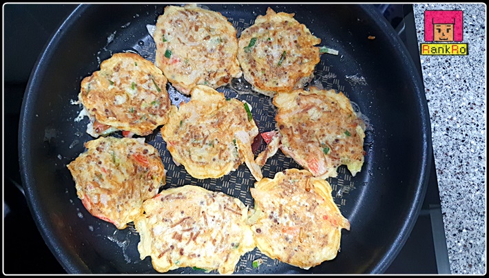 ▼ 크래미 팽이버섯전을 앞 뒤로 노릇노릇하게 구워 주세요. 큼짐막하게 부치는 것 보다는 한입 사이즈로 부쳐서 먹는게 먹기도 편한 것 같아요.