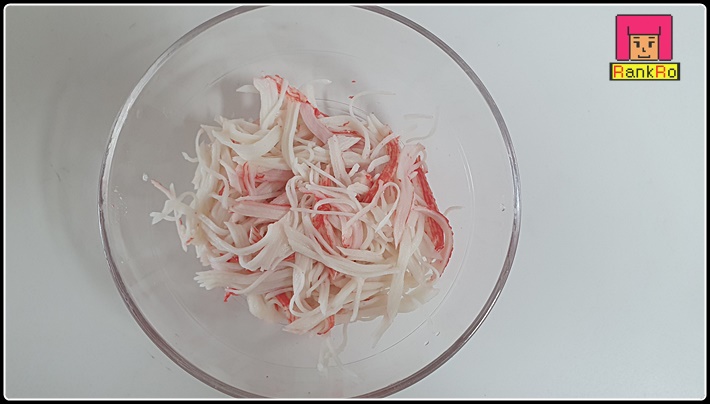 ▼ 크래미전에 들어가는 크래미를 결대로 찢어 줍비 합니다.