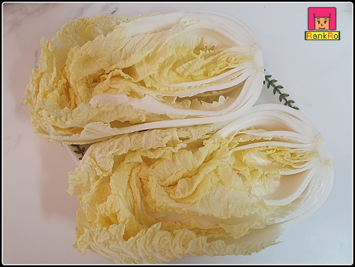 ▼ 배추는 밑동을 제거 한 후 깨끗하게 씻어 준비합니다. 배추를 자른 상태로 씻어주면 씻기도 편하고 손질하여 먹기도 편합니다.