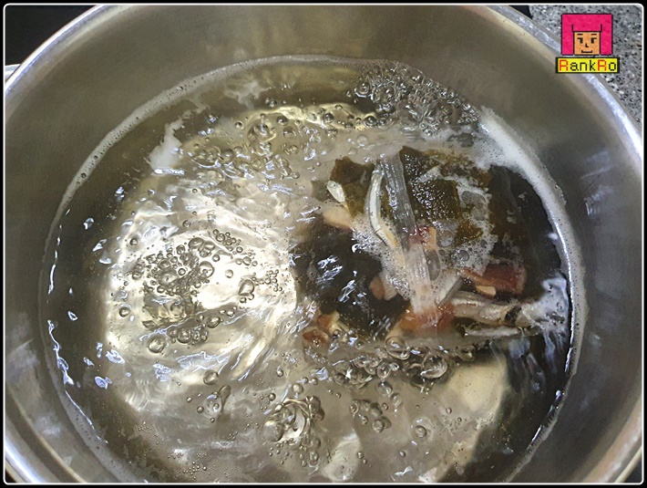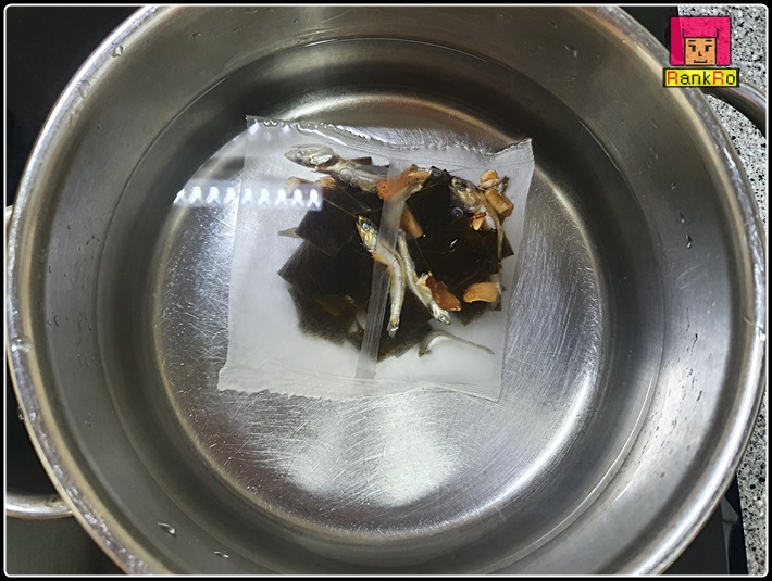 ▼ 육수팩을 넣고 끓으면 중 약불로 줄인 후 뚜껑을 덮고 10분 정도 끓여 육수를 만들어 주세요. 육수가 만들어지면 육수 팩은 건져내 주세요.