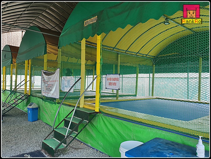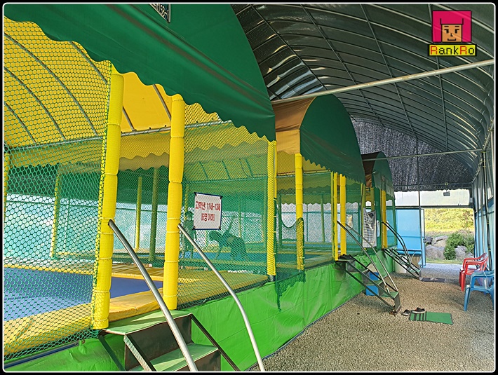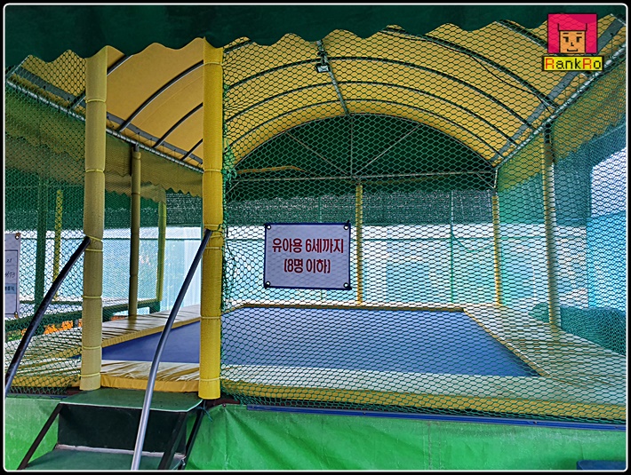 ▼ 로하스캠핑장 관리동 옆 방방장입니다. 비닐하우스 그늘막 안에 설치되어 있어 여름이나 겨울에도 덥거나 춥지 않게 사용할 수 있을 것 같아요. 트램펄린은 3곳으로 유아용, 저학년, 고학년으로 구분되어 있어 안전하게 놀 수 있었습니다.