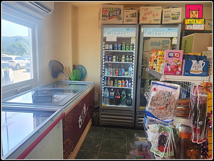 ▼ 로하스캠핑장 관리동 매점 모습입니다. 물건들이 깔끔하게 진열되어 있으며 기본적인 음료와 간식거리, 캠핑에 필요한 것들이 구비되어 있어 이용하시면 될 것 같네요.