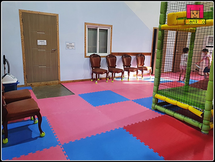▼ 바닥도 아이들 안전을 위해 매트도 깔려있어 아이들이 신나게 놀 수 있는 로하스캠핑장이며, 놀이방 내부에 화장실이 있어 좋았던 것 같아요.