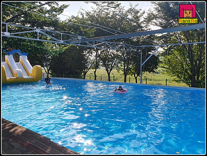 ▼ 로하스 캠핑장 수영장입니다. 대형 수영장으로 에어바운스도 있고 물이 깨끗하게 관리가 잘되어 아이들이 신나게 물놀이를 즐겼답니다.