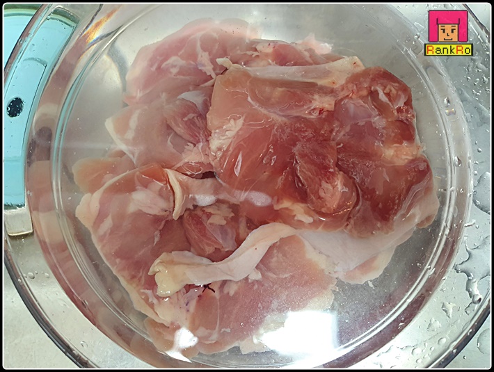 ▼ 닭다리살을 깨끗하게 씻어 준비합니다.