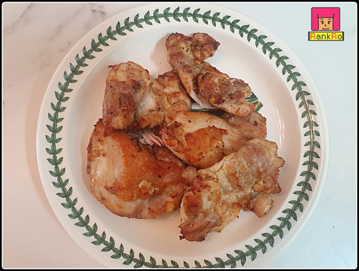 ▼ 전체적으로 노릇노릇 맛있게 잘 구워진 닭다리살, 닭구이 에어프라이어 요리가 완성되었습니다.