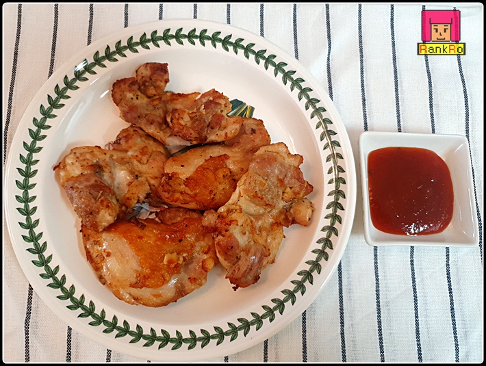 ▼ 노릇노릇 맛있게 만들어진 에어프라이어 닭다리살치킨이 완성되었어요!! 신선한 닭다리살이라 우유에 재워 두지 않고 바로 조리했는데 냄새 없이 시판 치킨집보다 더 맛있는 닭구이, 닭다리살 구이가 되었습니다. 치킨 양념소스를 찍어 먹어도 좋고, 그대로 먹어도 고소하고 간이 잘 배어 있어 맛이 좋답니다.