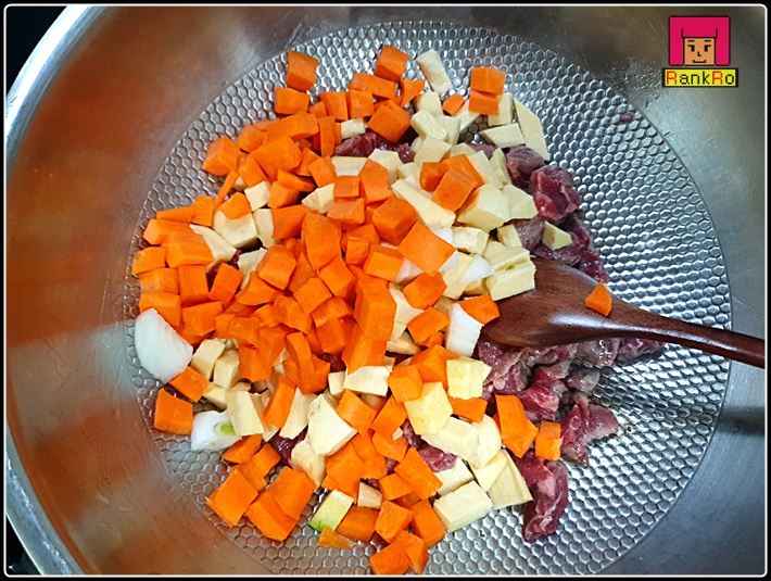 ▼ 어느 정도 고기가 볶아졌다면 준비된 당근과 고구마를 먼저 넣어 가볍게 볶아 주세요.