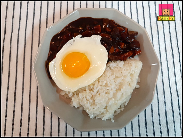 ▼ 마지막으로 밥과 함께 짜장을 넉넉하게 담아 주시고 달걀프라이 반숙도 하나 올려 주면 짜장밥 만들기 완성입니다.