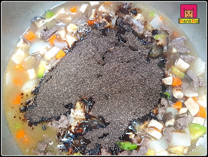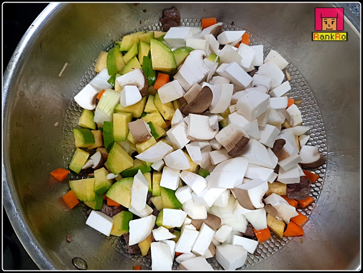 ▼ 물을 500ml 정도 넣고 중불로 끓여주세요. ( 물의 양은 준비된 야채에 맞게 넣어 주시면 됩니다. )